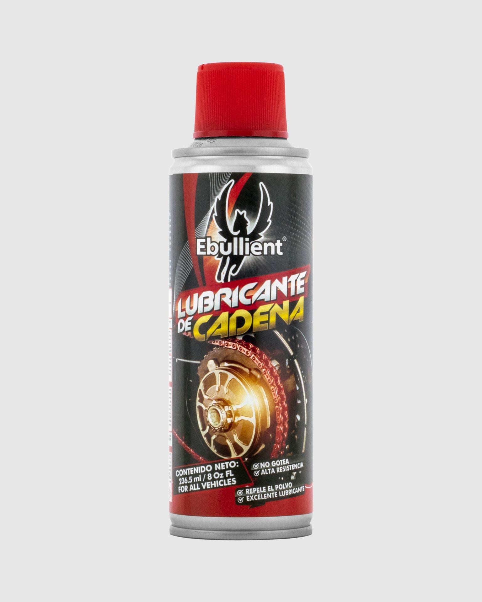 Lubricante para Cadena Ebullient tiene un alto desempeño con cualquier cadena sometida a alta temperatura y fricción ya sea de motocicletas, bicicletas, cadenas de puertas automáticas, herramientas de corte, cadena de industria agrícola, minera, de construcción entre otras.